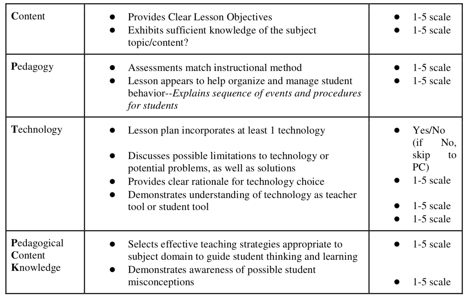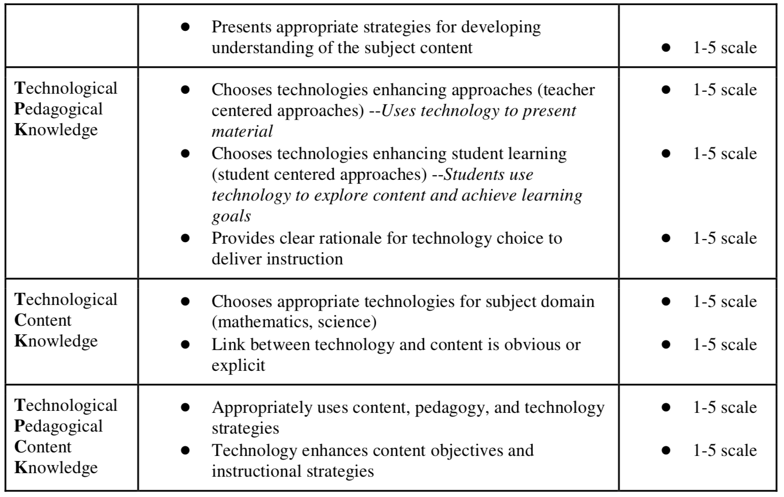 Akcaoglu, M., Kereluik, K., & Casperson, G. (2011). Refining TPACK Rubric through Online Lesson Plans. Society for Information Technology & Teacher Education International Conference 2011. 4260 – 4264. Retrieved from https://www.researchgate.net/publication/279495336_Refining_TPACK_Rubric_through_Online_Lesson_Plans